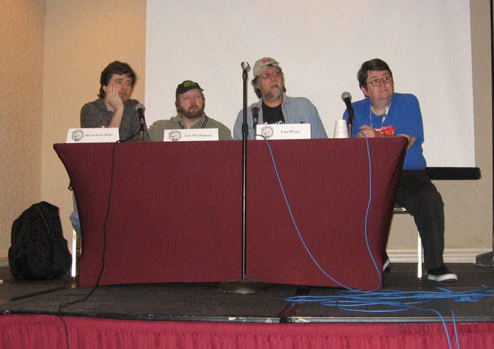 Me on a comic creating panel at MidSouthCon with JJM, Len Wein, and Mike Curtis.