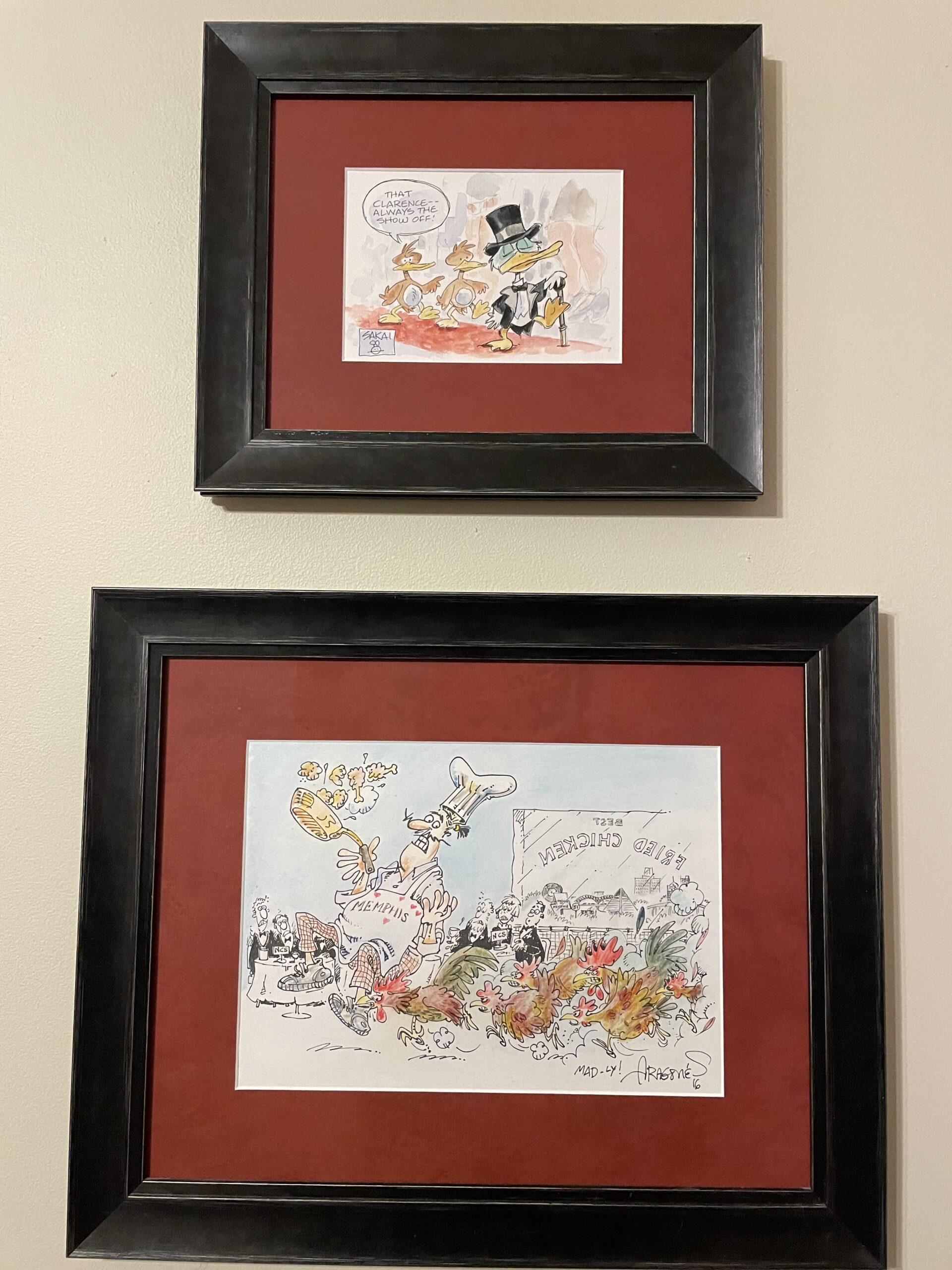 A sketch by Sergio Aragones from Ohio State, and Stan Sakai and Sergio originals Nicki won in the silent auction at the NCS Reubens dinner at St. Jude.